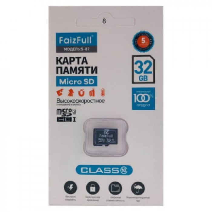 Карта памяти micro SD FaizFull 32GB Класс 10 без адаптера